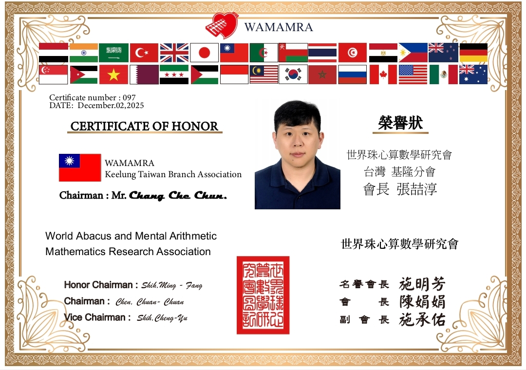 2025-5-4 Taiwan International Mental Arithmetic,Mathematics and English Competition